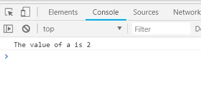 javascript let a = 2; console.log('The value of a is ' + a);> Sortir: