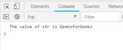 javascript let str = 'techcodeview.com'; console.log('The value of str is ' + str);> Sortir: