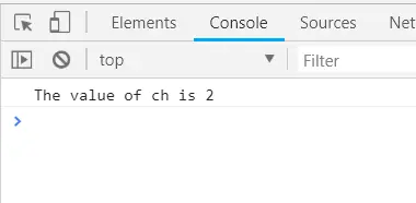 javascript let ch = '2'; console.log('The value of ch is ' + ch);> Sortir: