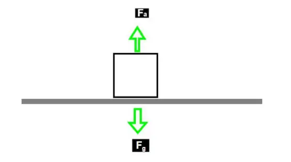 Force de gravité agissant sur un bloc, Fg= -10 N (vers le bas)