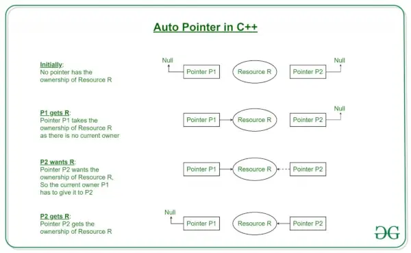 // C++ program to demonstrate the working of unique_ptr> // Here we are showing the unique_pointer is pointing to P1.> // But, then we remove P1 and assign P2 so the pointer now> // points to P2.> #include> using> namespace> std;> // Dynamic Memory management library> #include> class> Rectangle {> >int> length;> >int> breadth;> public>:> >Rectangle(>int> l,>int> b)> >{> >length = l;> >breadth = b;> >}> >int> area() {>return> length * breadth; }> };> int> main()> {> // --/ Smart Pointer> >unique_ptr P1(>new> Rectangle(10, 5));> >cout // This'll print 50 // unique_ptr P2(P1); unique_ptr P2; P2 = move(P1); // This'll print 50 cout // cout return 0; }> |