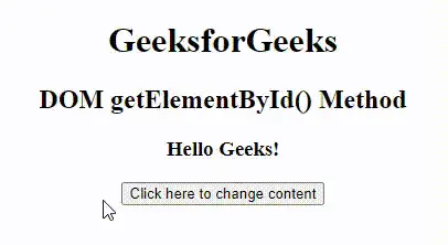 2. piemērs: Šis piemērs apraksta getElementById() metode, kurā element_id tiek izmantots, lai mainītu saturu, noklikšķinot uz pogas.