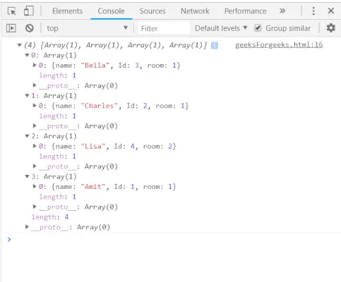 Underscore.js _.filtrează după() funcția este folosită pentru a sorta toate elementele listei în ordine crescătoare în funcție de funcția care i-a fost dată ca parametru. Trecerea matricei cu o funcție care returnează numărul și va sorta matricea în ordine crescătoare și va returna o matrice. Matricea poate fi atât valori numerice, cât și valori șir.
